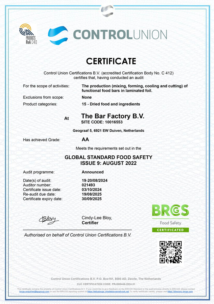 9. Control Union Certifications B.V. (GLOBAL STANDARD FOOD SAFETY ISSUE 9: AUGUST 2022)