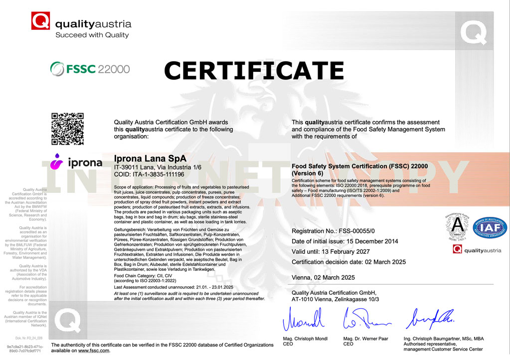 2. Quality Austria – Food Safety System Certification (FSSC) 22000