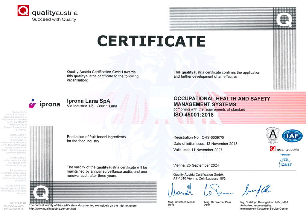 3. Quality Austria – Occupational Health and Safety Management System (ISO 45001:2018)