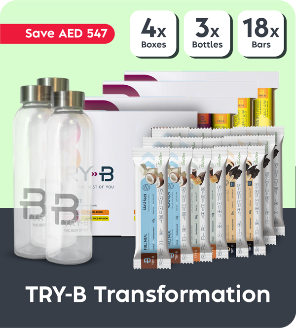 TRY-B Transformation Bundle combines TRY-B concentrates & bars for 5 weeks – filling, vegan & full of vitamins.