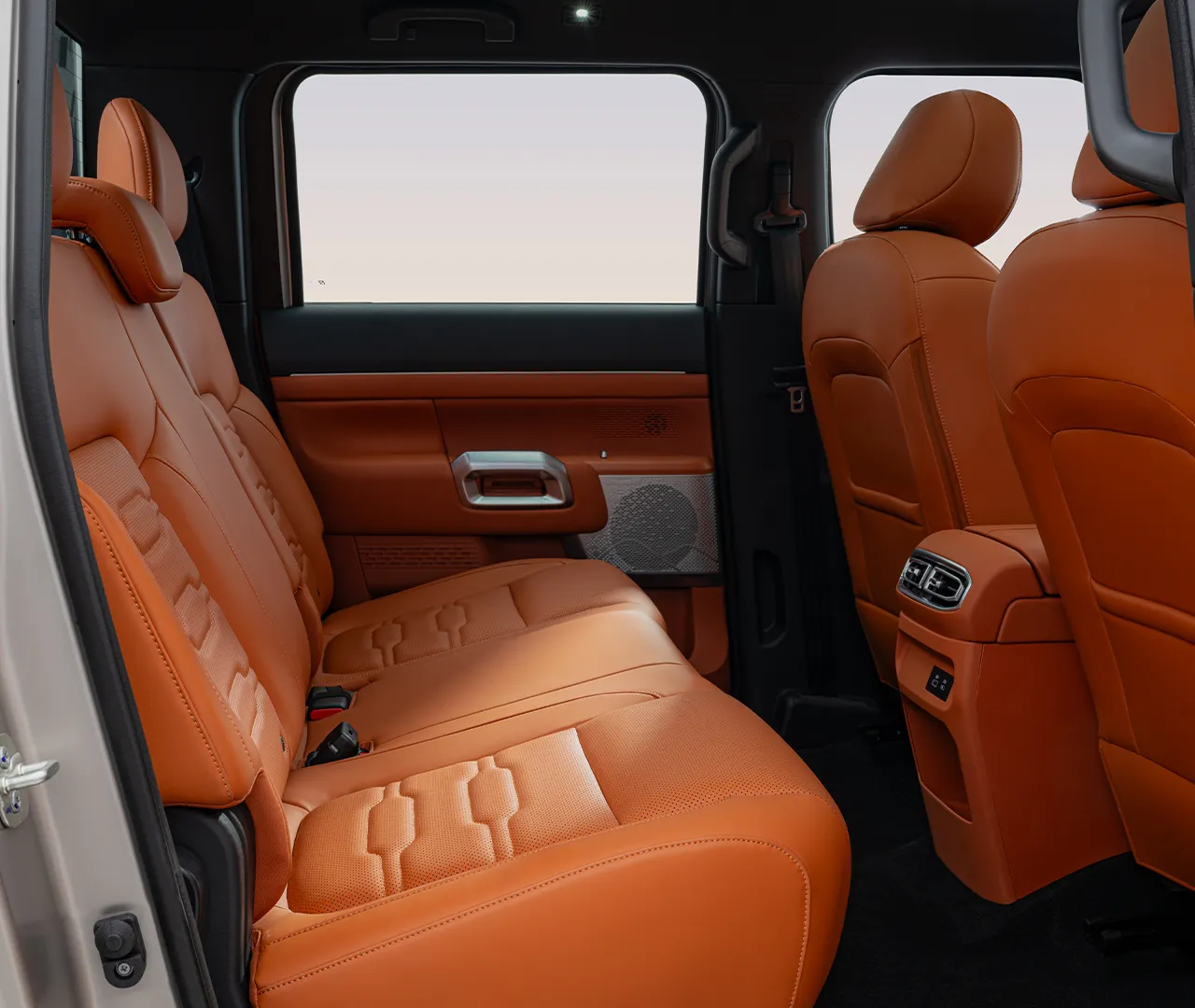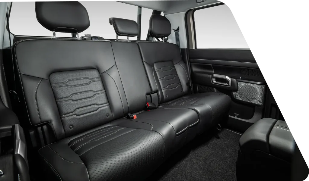 The Dongfeng Z9 features generously spacious rear seats wrapped in premium leather with bold contrast stitching that reflects the truck's adventurous and rugged character. Deeply cushioned and ergonomically contoured, these seats provide exceptional comfort and support for every passenger on both short city drives and long off-road expeditions. Heated rear seat functionality ensures every occupant stays warm and comfortable even in the coldest outdoor environments and conditions. Wide cabin space and thoughtfully designed door panels create an open and welcoming rear environment that feels surprisingly refined for a capable pickup truck. Individual armrests and premium interior trims add a layer of sophistication that perfectly complements the Z9's bold exterior personality.